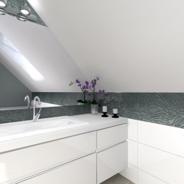 Dokładnie o projektowaniu łazienki piszę w osobnym poradniku – TUTAJ. W niniejszym artykule przedstawię zatem pokrótce najważniejsze aspekty. Projekt wnętrza rozpoczynamy od zaplanowania instalacji wodno-kanalizacyjnej, niezbędnych pomiarów oraz sprecyzowania, jakie funkcjonalności potrzebne będą domownikom. Często projektuję łazienki bardzo trudne w aranżacji – np. łazienki na poddaszu, albo bez okna. W takich sytuacjach musimy również na wstępie podjąć decyzję na temat oświetlenia oraz odpowiedniej wentylacji.