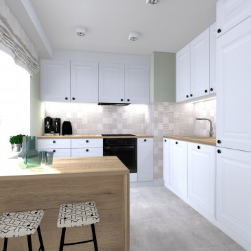 To wciąż aktualny trend w aranżacji kuchni. Takie płytki można układać na wiele sposobów – np. pod kątek konstruujących kolorów. Płytki heksagonalne świetnie zagospodarują ścianę nad blatem lub podłogę w kuchni. To rozwiązanie polecam do kuchni połączonych z salonem (zarówno na podłogę, jak i ściany), ponieważ płytki będą zgrabnie łączyć się z podłogą salonu. Aranżacja będzie wtedy spójna, ale zachowamy czytelny podział między strefą kuchenną i wypoczynkową.